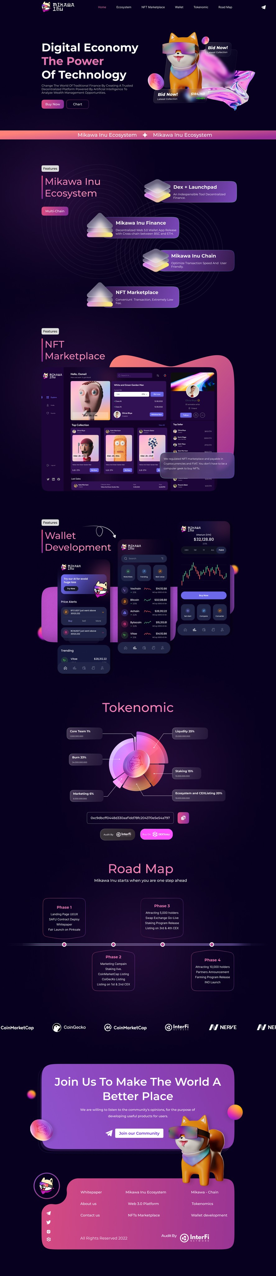 Mikawa Inu's UI design seamlessly blends functionality and aesthetics for both computer and mobile versions. The computer version features a clean dashboard, AI-driven wealth analysis, and intuitive portfolio management. Security is prioritized with two-factor authentication and activity tracking. The mobile version maintains responsiveness with quick access menus, touch-friendly controls, and interactive charts. Transaction history, user settings, and a cohesive brand identity contribute to a user-friendly experience, ensuring Mikawa Inu users can make informed financial decisions effortlessly.